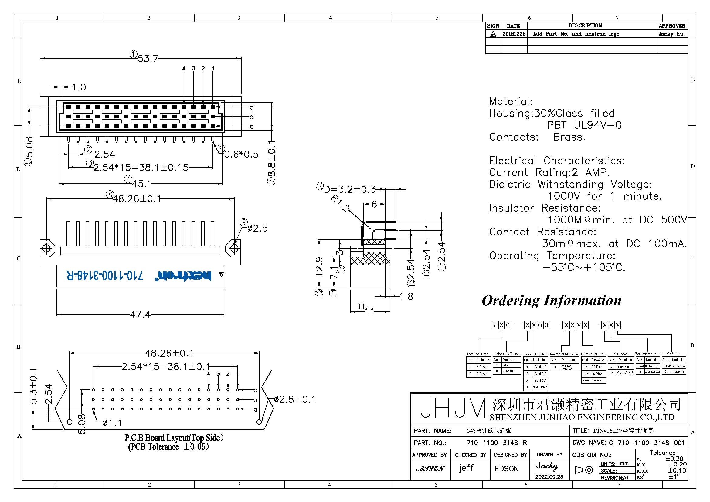 主体Housing:PBT+30%GF,PBT UL94V-0
