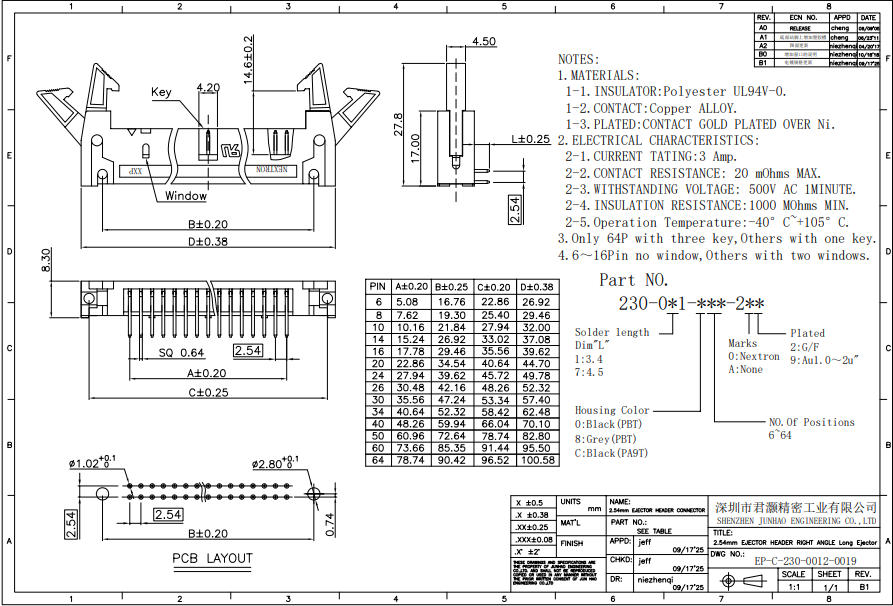 主体Housing:PBT+30%GF,PBT UL94V-0