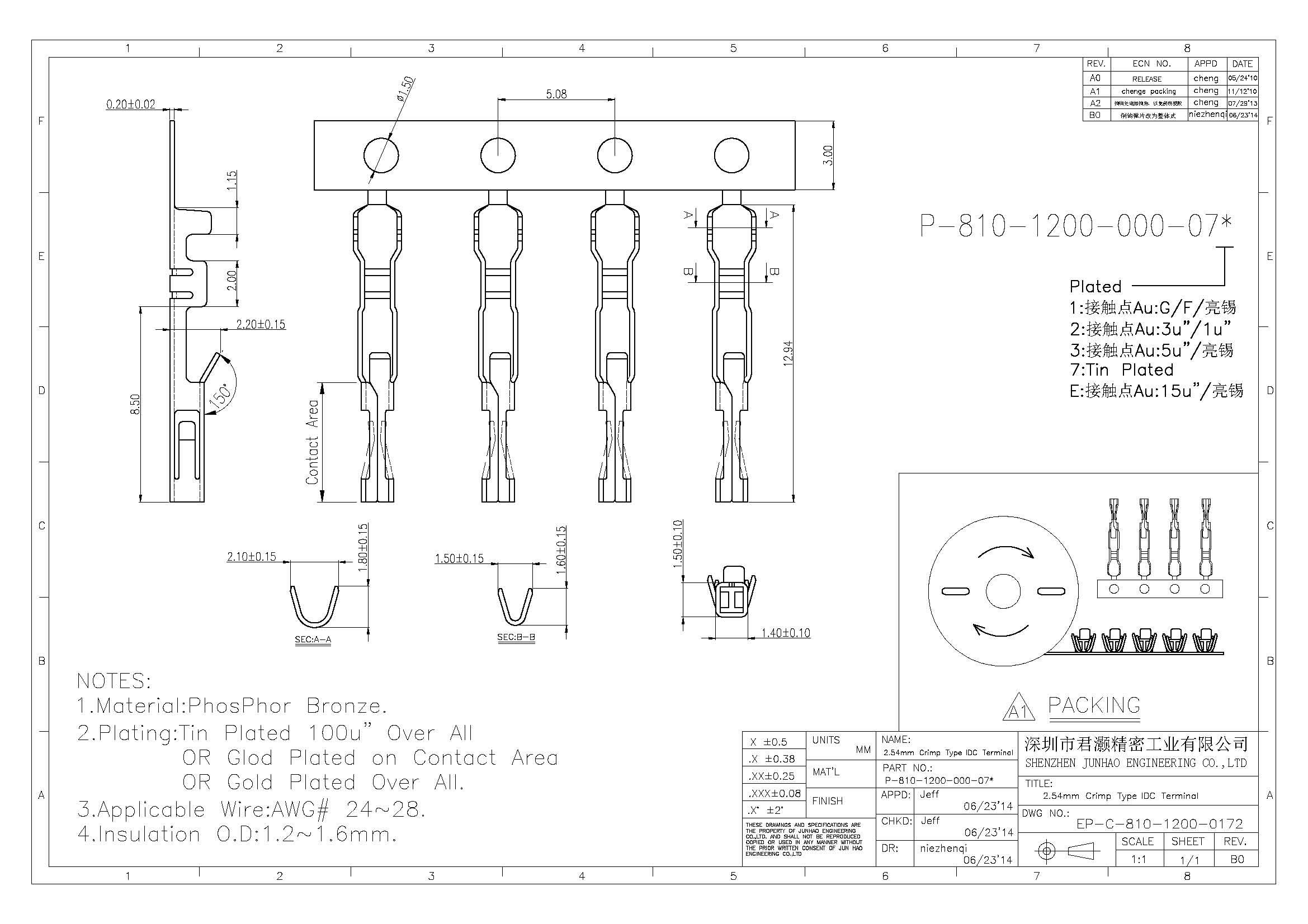 2.54mm铆线式IDC插头-端子